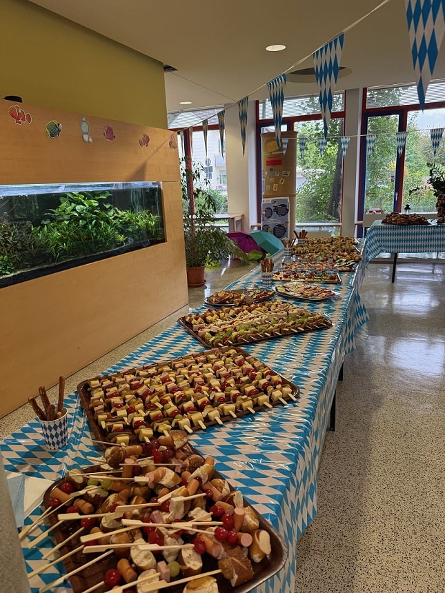 Mit viel Liebe zum Detail haben unsere Helferinnen und Helfer aus der Klasse 4a ein echtes Buffet der guten Laune gezaubert: